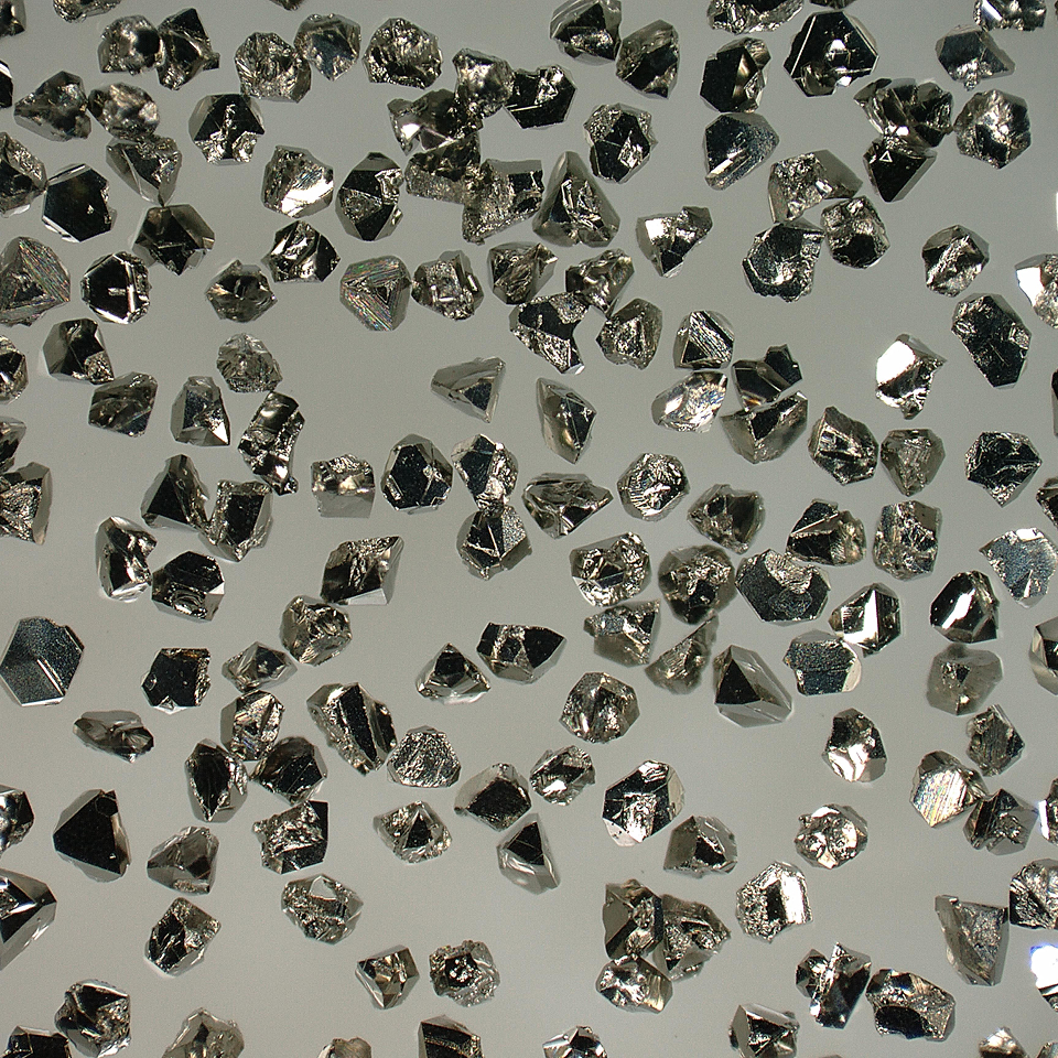 シルバー、スパイキー形状、ニッケル層比率:30%、56%、60%、砥粒とボンド間の保持力を高める。レジンボンド用。